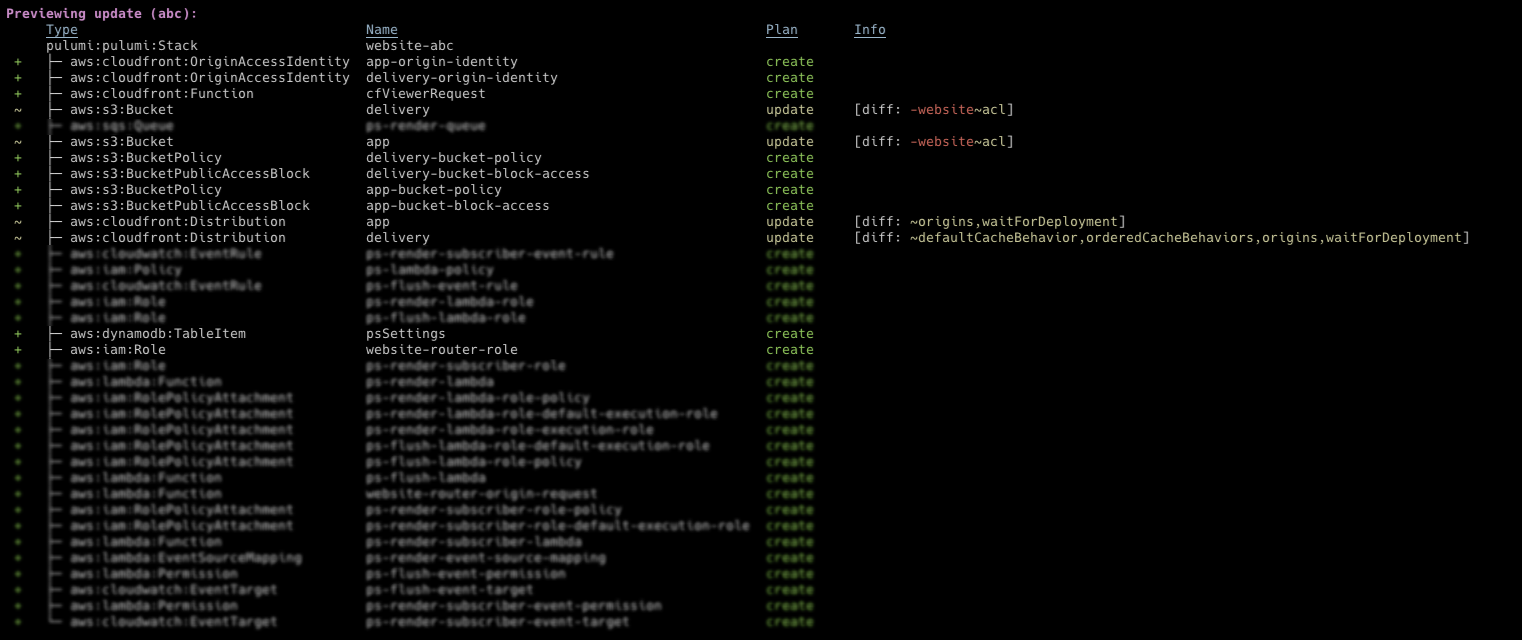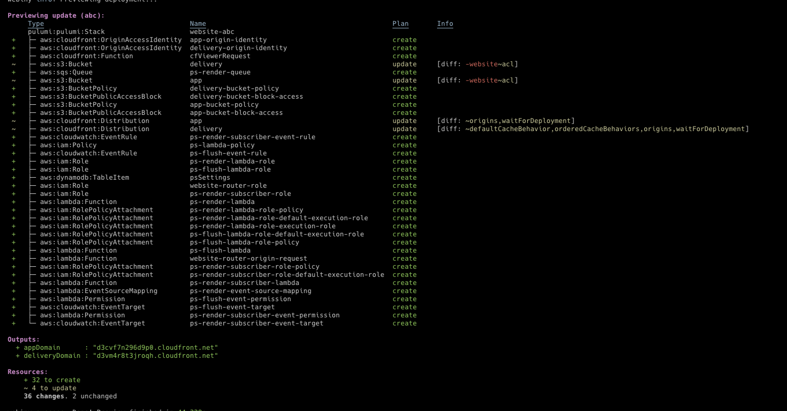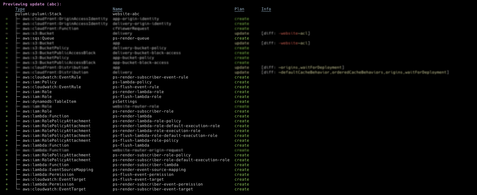 We’ll be doing deployments in an application by application manner. We definitely do not want to just run yarn webiny deploy, as for each application, we want to preview the deployment, analyse the changes Pulumi will perform, and make sure all is in order.
